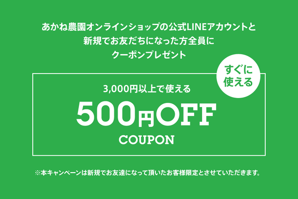 この度、あかね農園オンラインショップ LINE公式アカウントに新規でお友だち登録をしていただいた方に