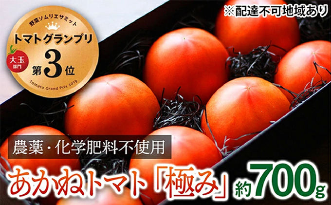 野菜ソムリエ協会主催「トマトグランプリ」 第3位に入賞したあかね農園のトマトの中でも、 最高の糖度・形・甘さと酸味の バランスのものを選りすぐった、 最高級トマト「極み」。 全収量の1%しか採れない貴重な品を、ぜひ一度ご賞味ください。